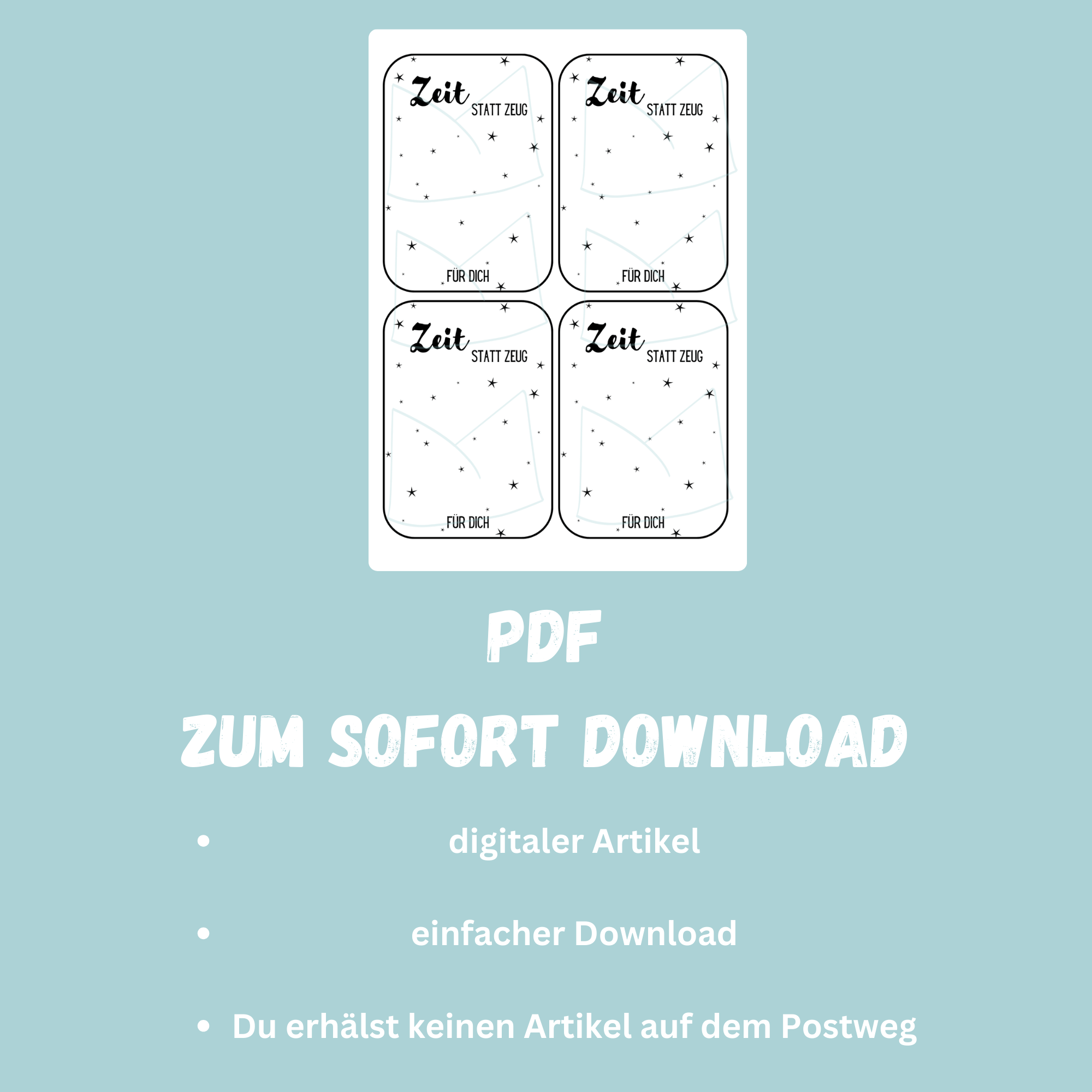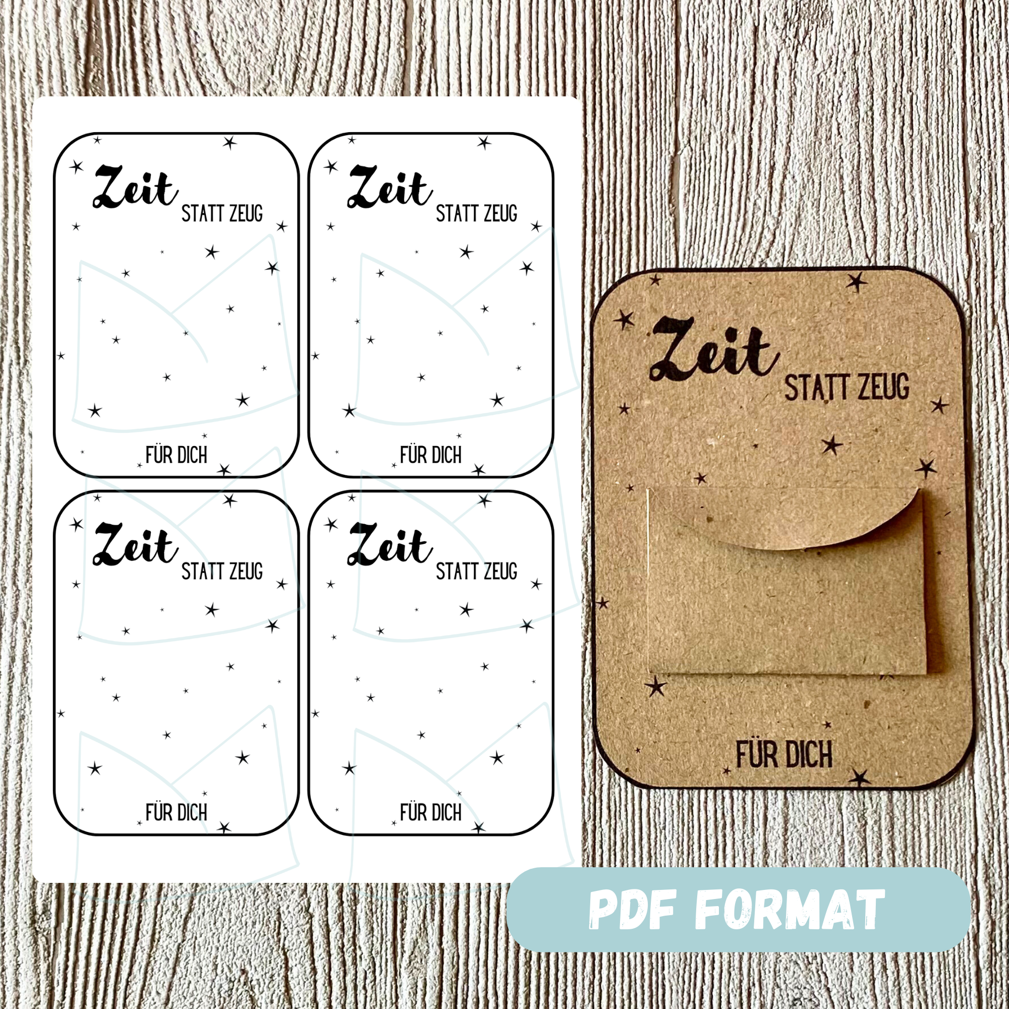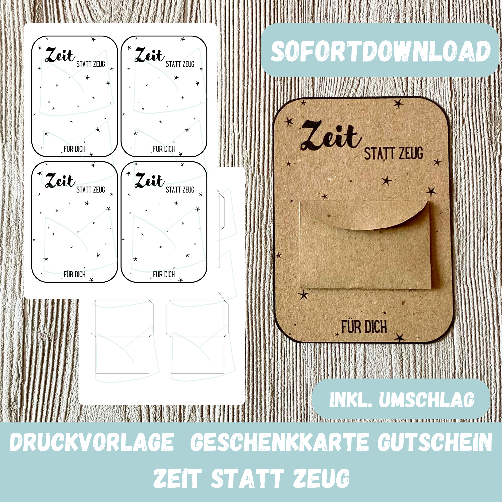 DIY Druckvorlage Geschenkkarte für Gutschein – Zeit statt Zeug – Karte zum Bestücken – PDF