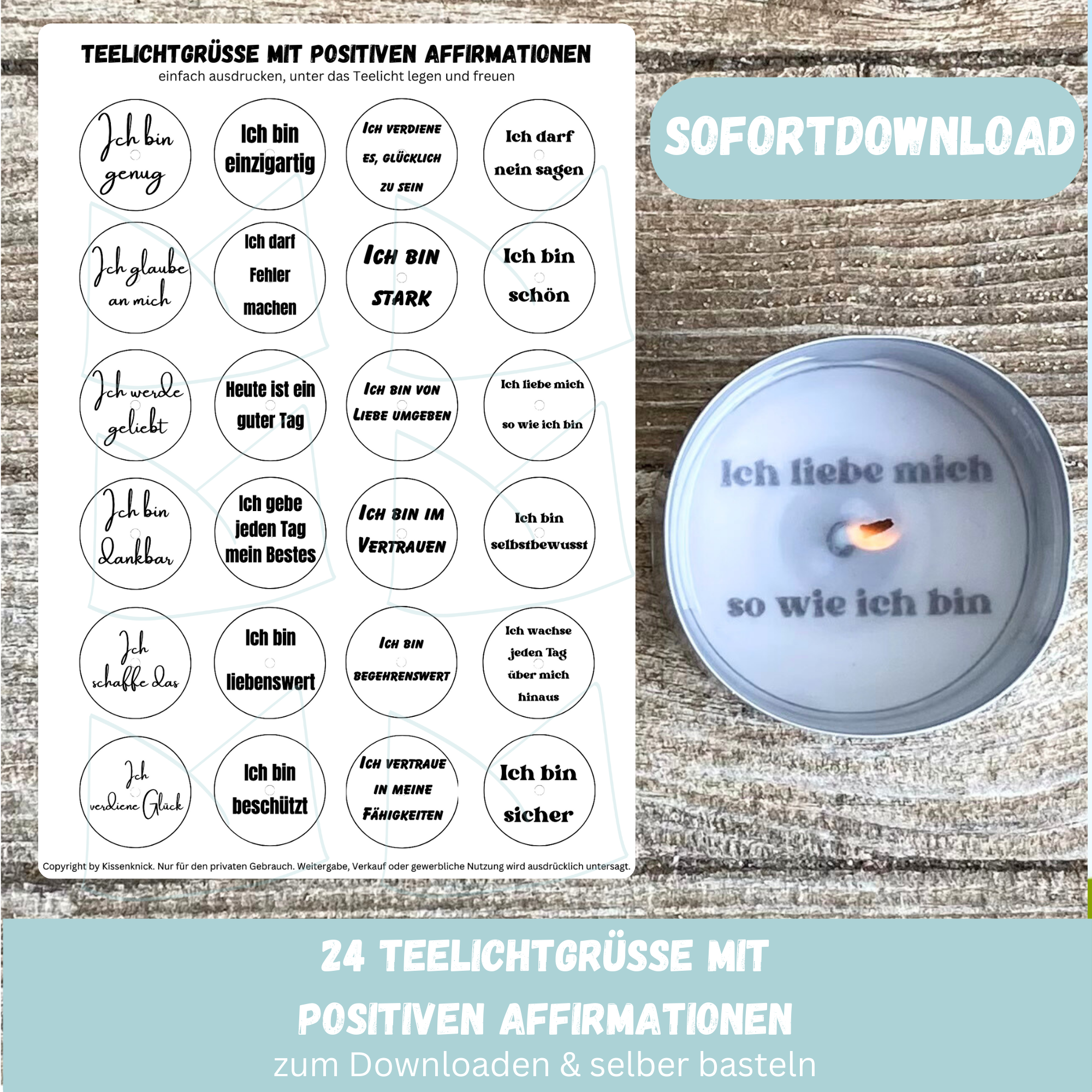 Die Datei ist ausschliesslich für den privaten Gebrauch bestimmt. Solltest Du Teelichter mit unseren Vorlagen verkaufen wollen, findest Du im Shop die entsprechende Datei.