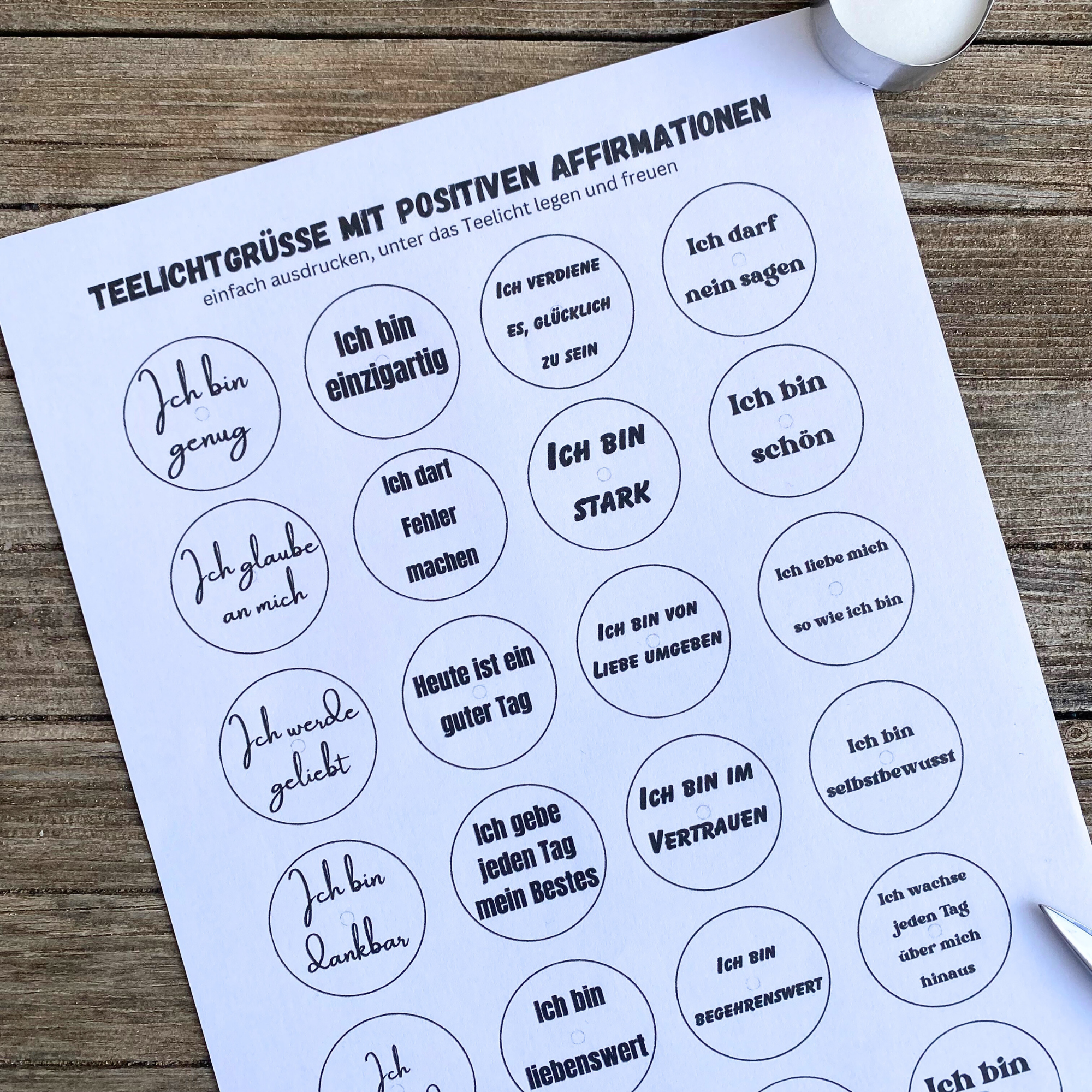 Manchmal reicht ein kleiner Moment, um das Herz zu erwärmen – ein sanftes Kerzenlicht und eine Botschaft, die berührt. Die Teelichtbotschaften mit positive Affirmationen verwandeln einfache Teelichter in liebevolle Erinnerungen an Selbstliebe, Mut und Zuversicht.