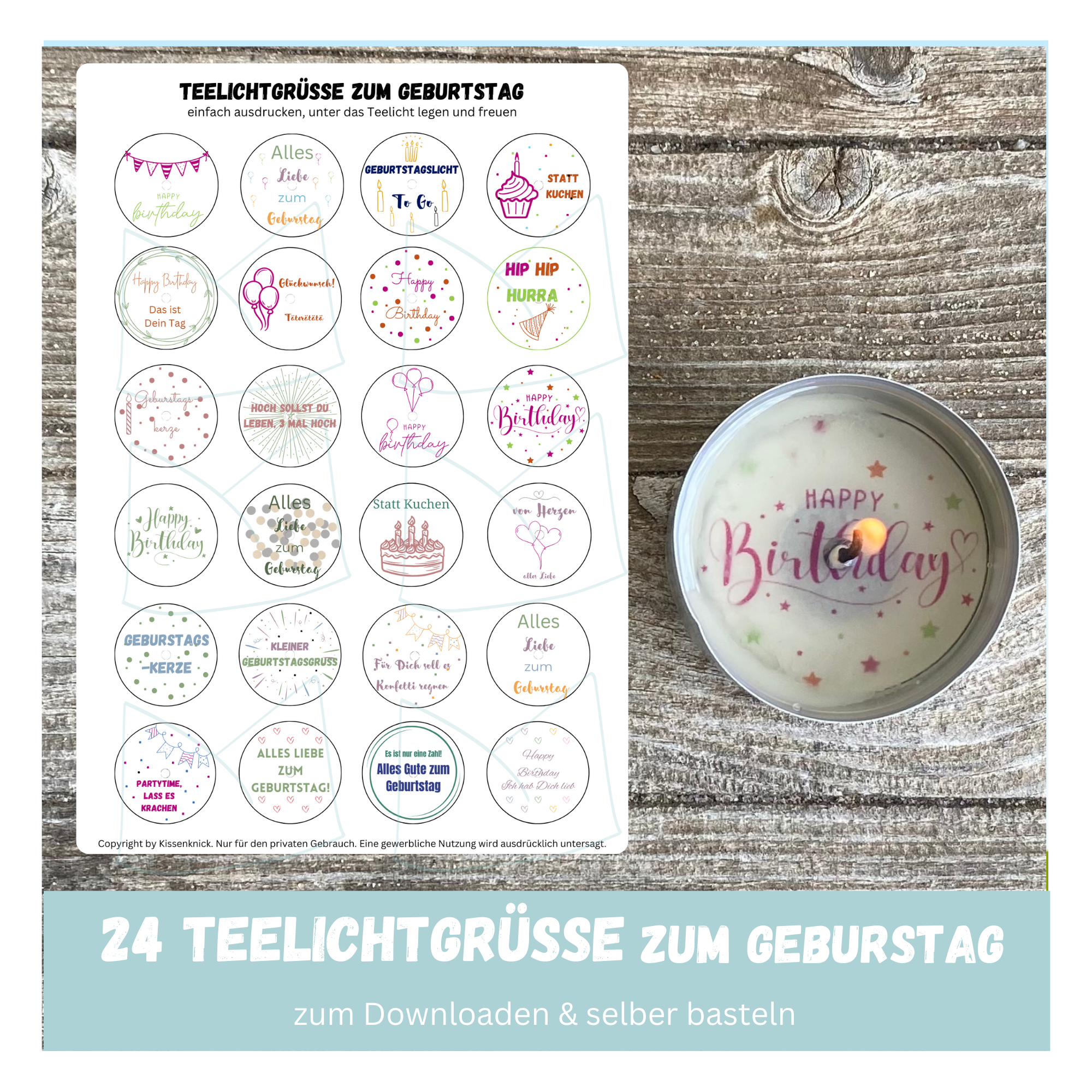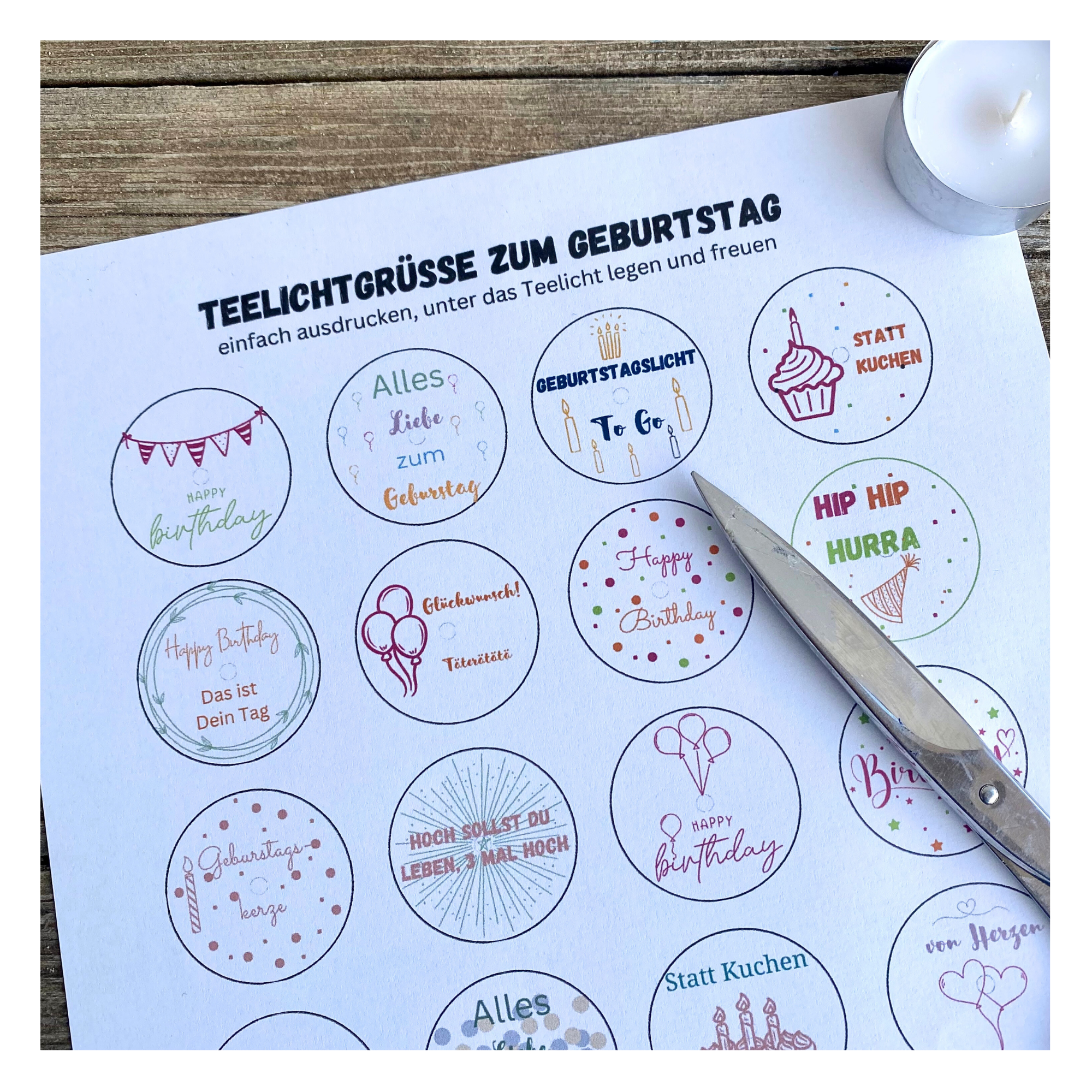 Jemand in Deinem Freundeskreis oder zB die Arbeitskollegin hat Geburtstag und Du suchst noch nach einer Kleinigkeit wie Du den Tisch schön dekorieren kannst? Drucke die Teelichtbotschaften mit den Geburtstagsgrüssen aus und verteile sie auf dem Tisch. Die Beschenkte wird sich auf jeden Fall sehr freuen.