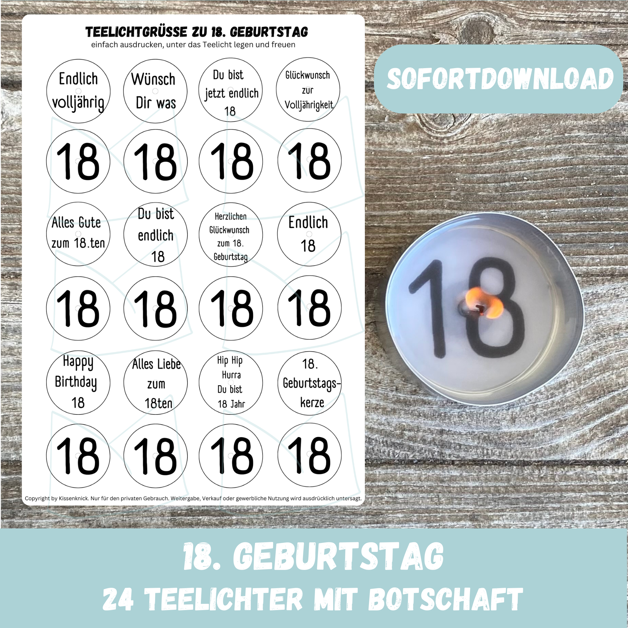 Stelle doch zB bei der Tischdeko im Wechsel Teelichter mt der 18 und guten Wünschen zum Geburtstag auf. Die Teelichtbotschaften sind auch ein schönes, kleines Geschenk für Freunde als Geburtstagskerze.