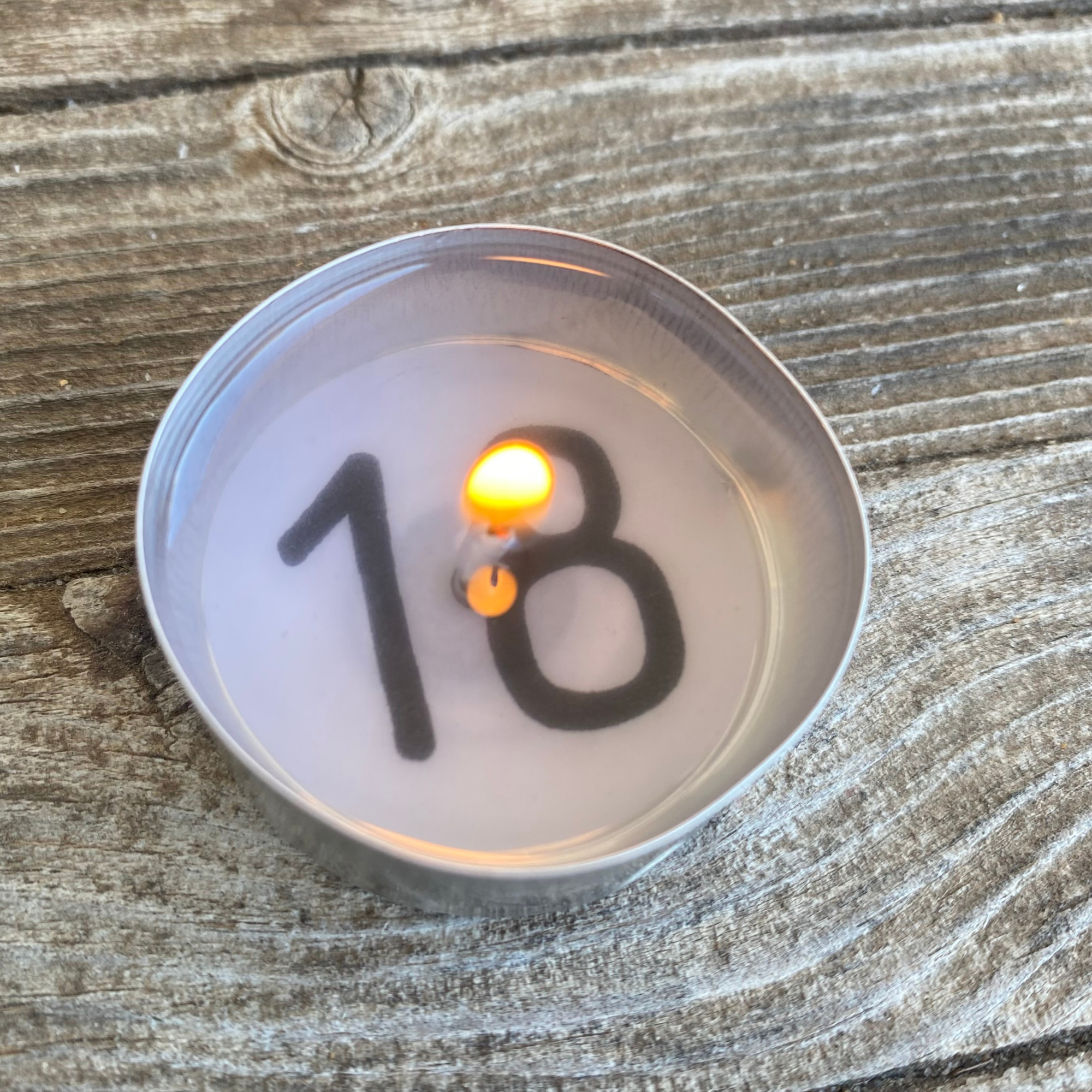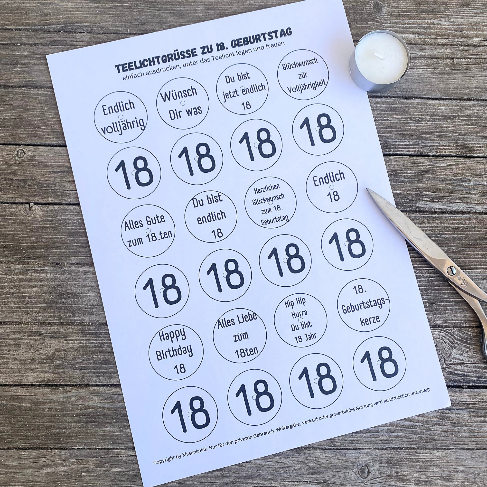 Um den 18. Geburtstag gebührend zu feiern, muss natürlich eine tolle Deko her. Dabei sind es auch die kleinen Dinge, die zählen wie z.B. Teelichtbotschaften mit der 18 und guten Wünschen zur Volljährigkeit.