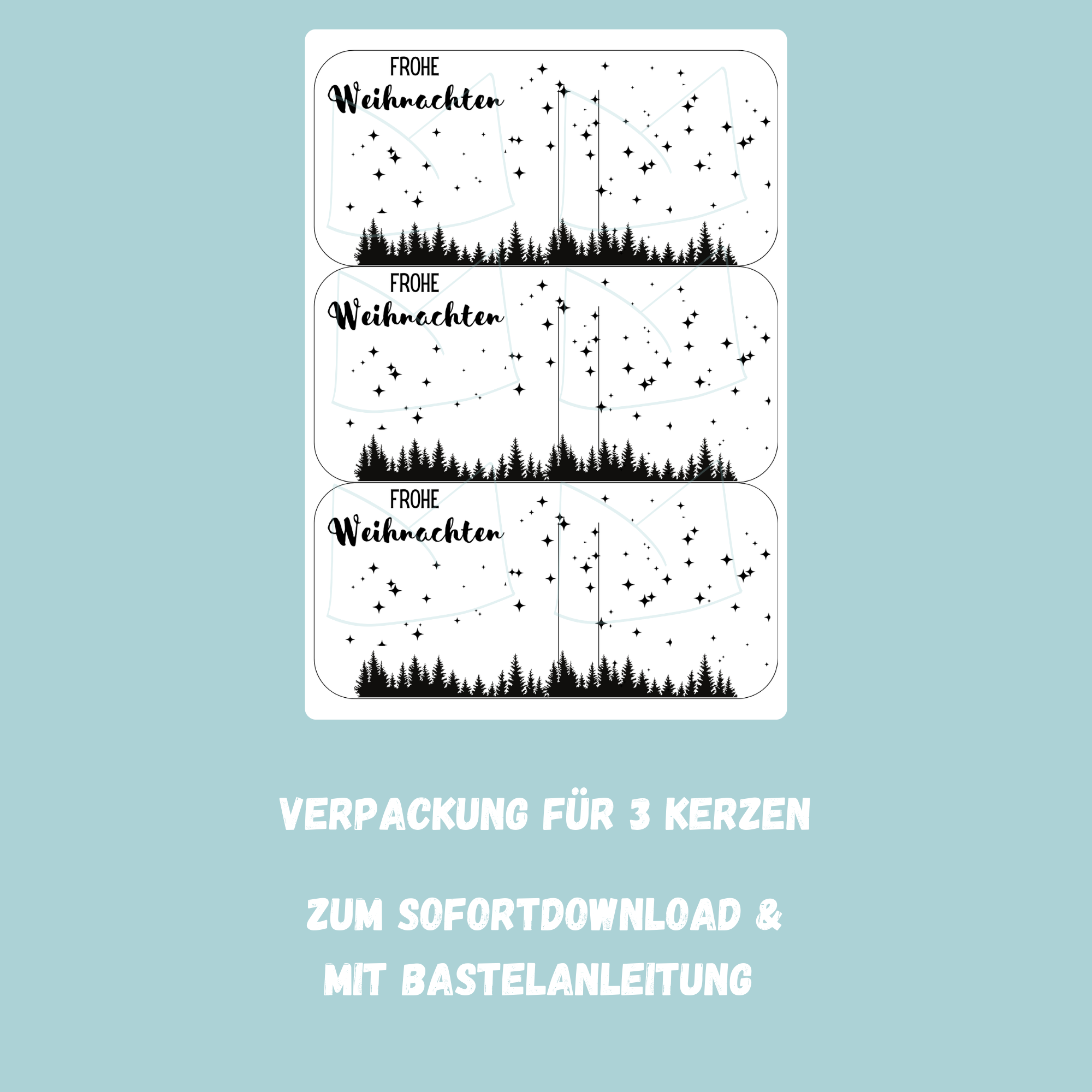 Weihnachtliche Verpackungsvorlage zum Ausdrucken und Ausschneiden fĂŒr Kerzen und andere Kleinigkeiten.