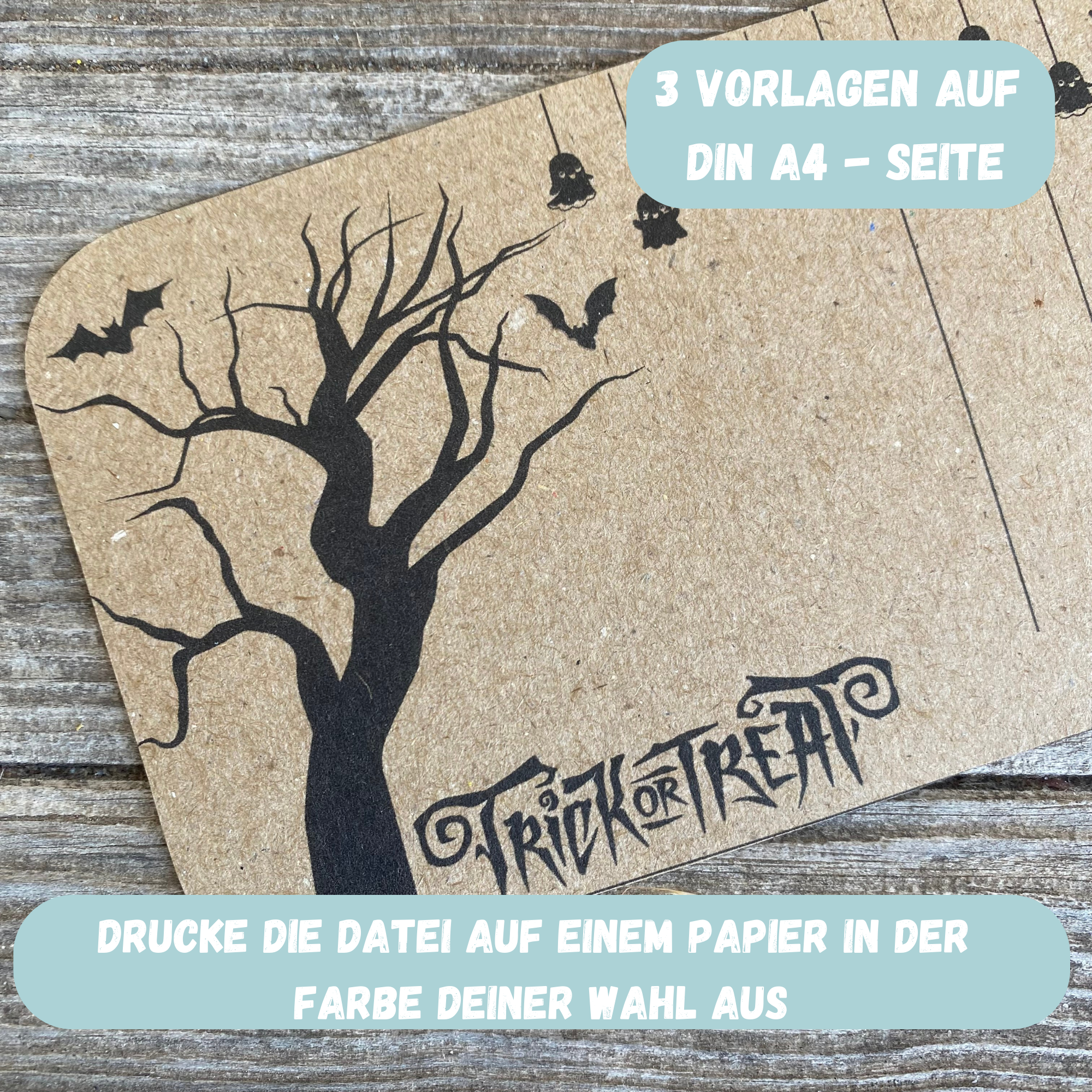 Druckvorlage für zuhause zum schnellen Basteln von Geschenken oder Mitbringseln an Halloween.