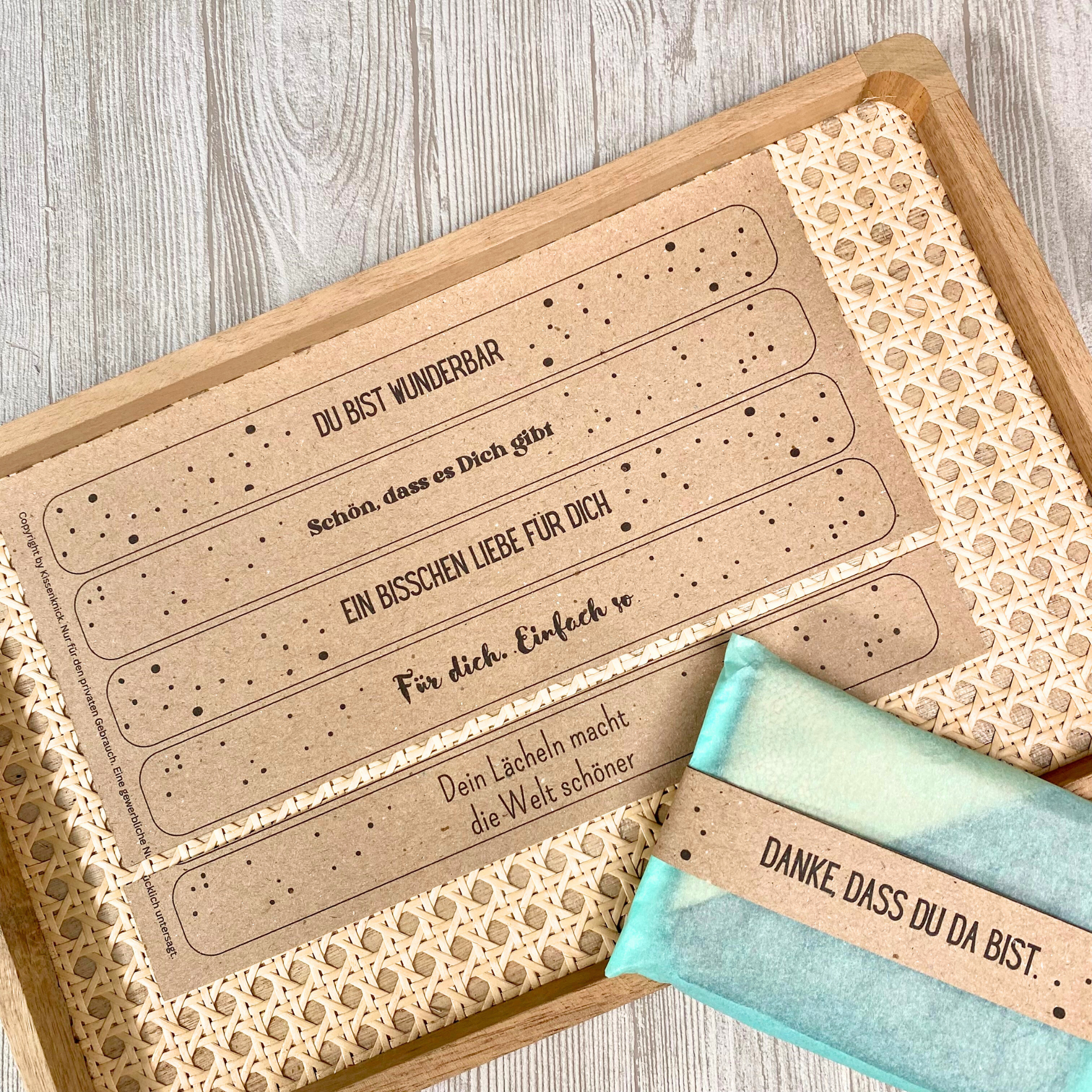 Mit der PDF Druckvorlage kannst Du kleine Geschenke liebevoll verpacken