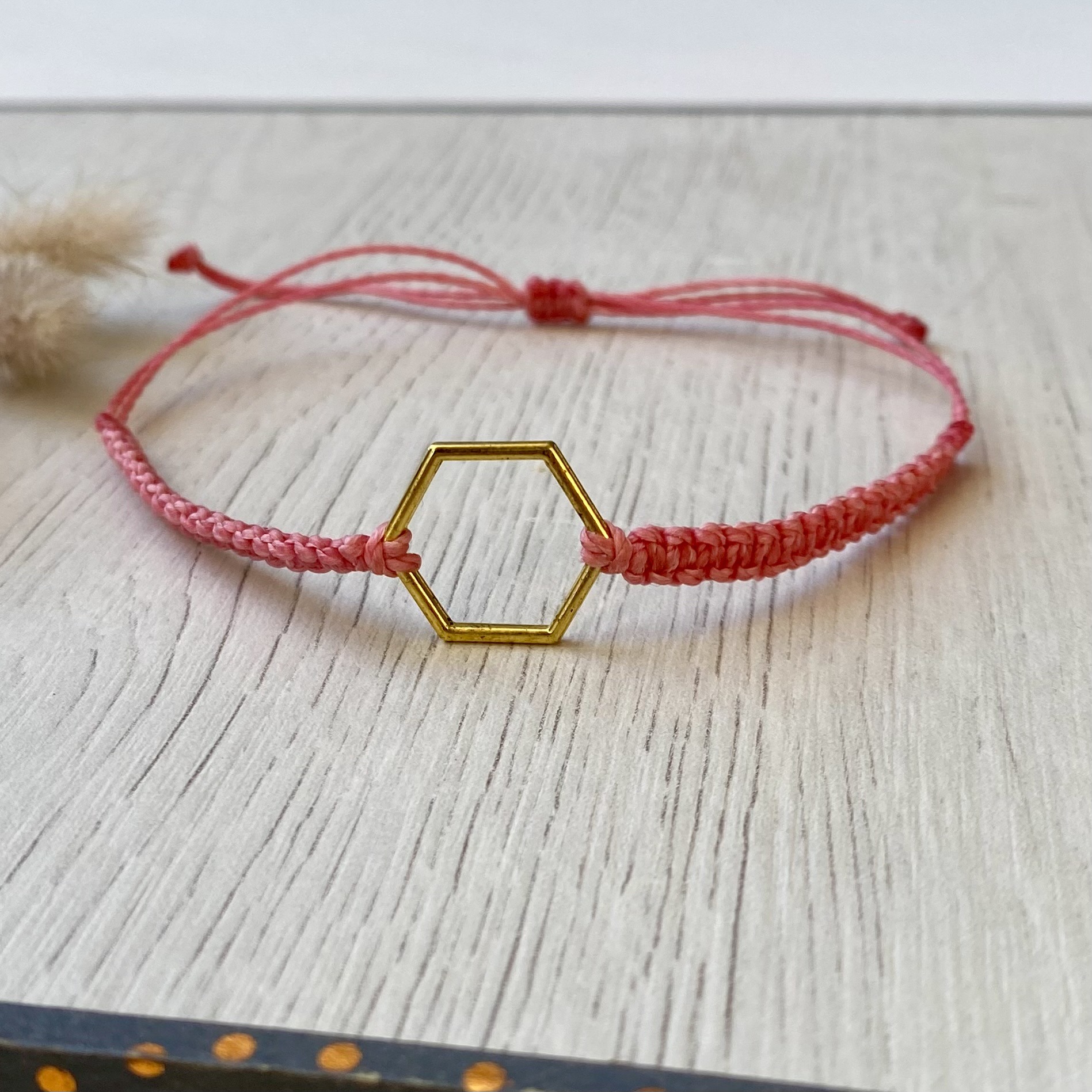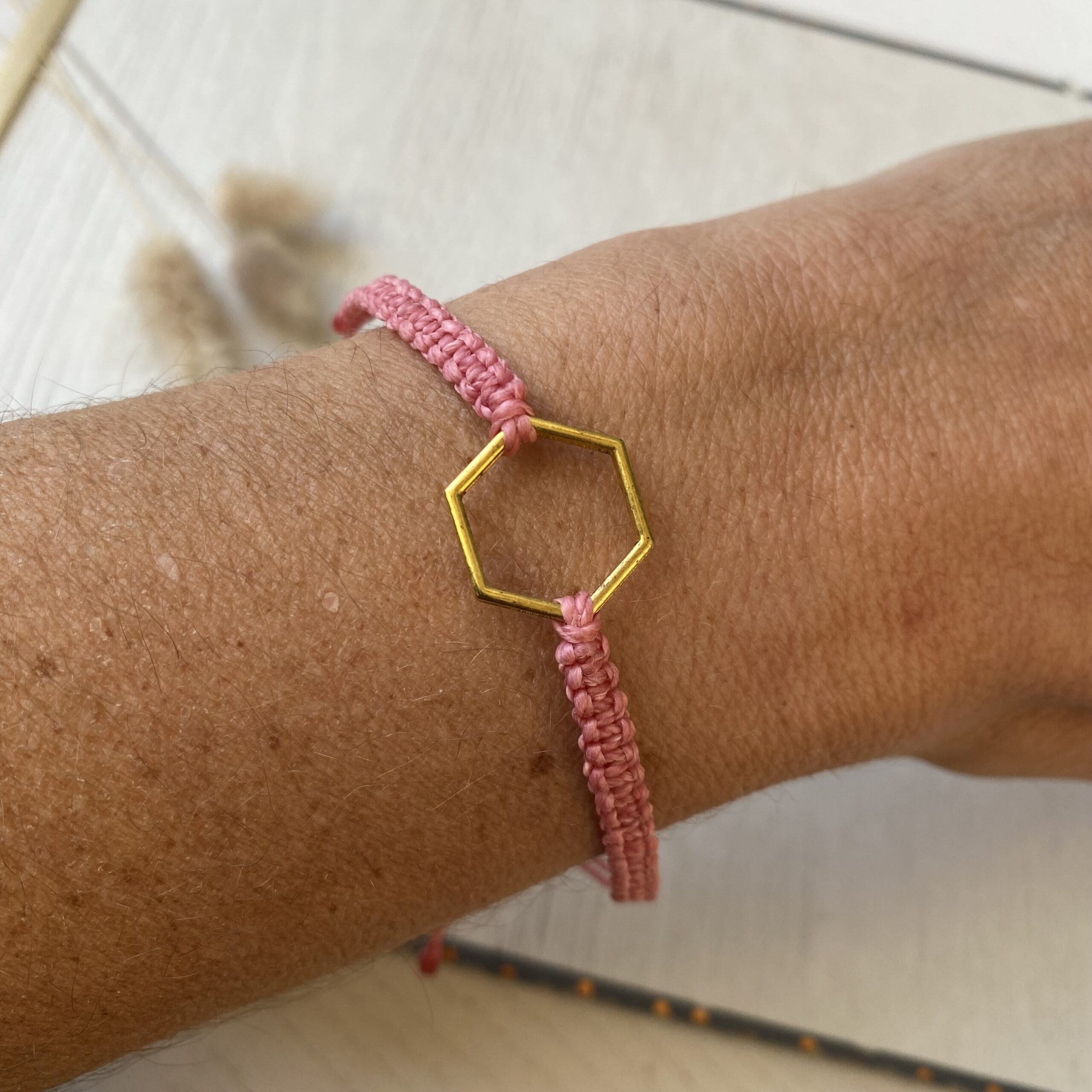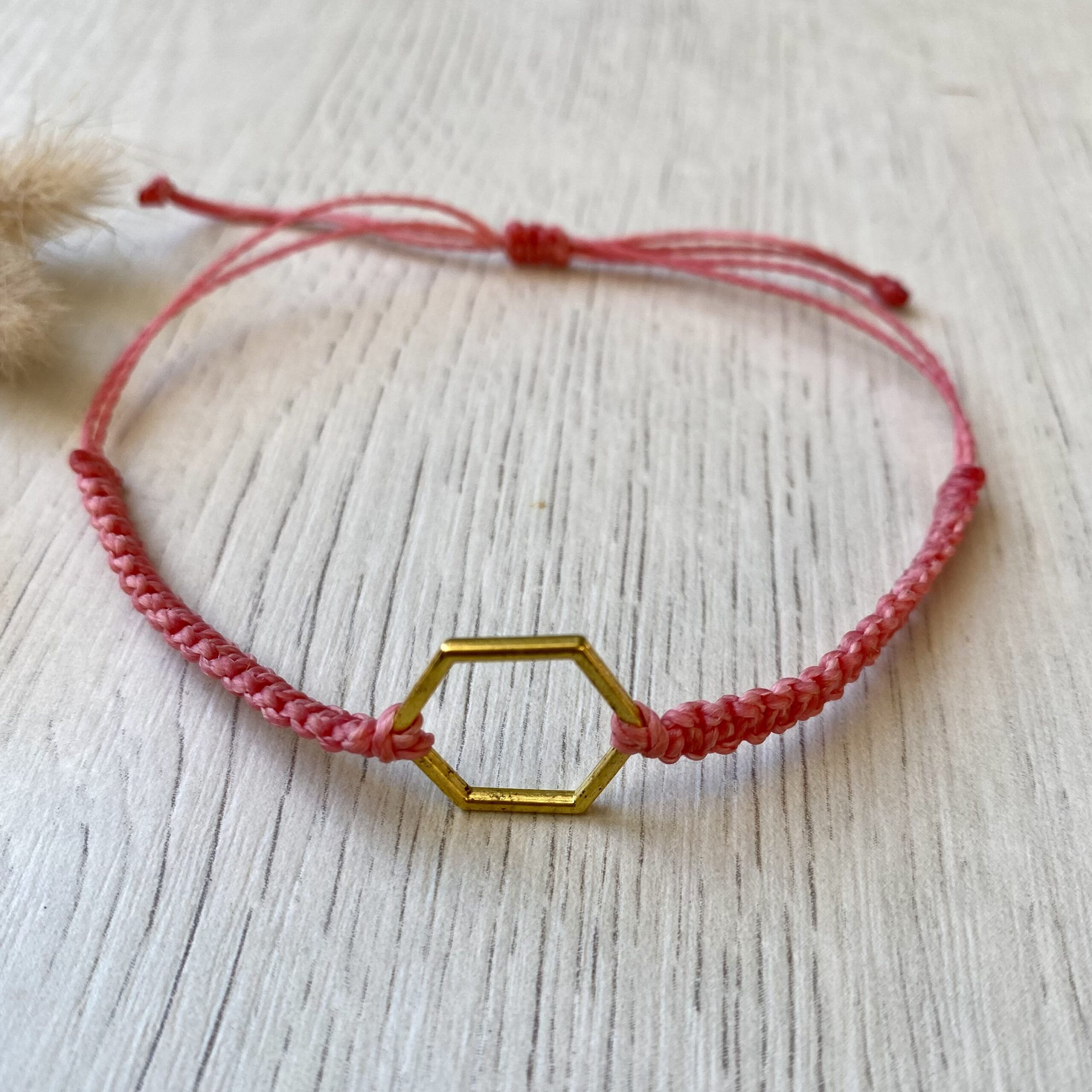 Unser Makramee-Armband mit dem vergoldeten Hexagon ist ein wundervolles Geschenk für Dich selbst und auch als Freundschaftsarmband, denn das Hexagon steht für Harmonie und Gleichgewicht. Die Garnfarbe kannst du passend nach Deinem Geschmack auswählen.