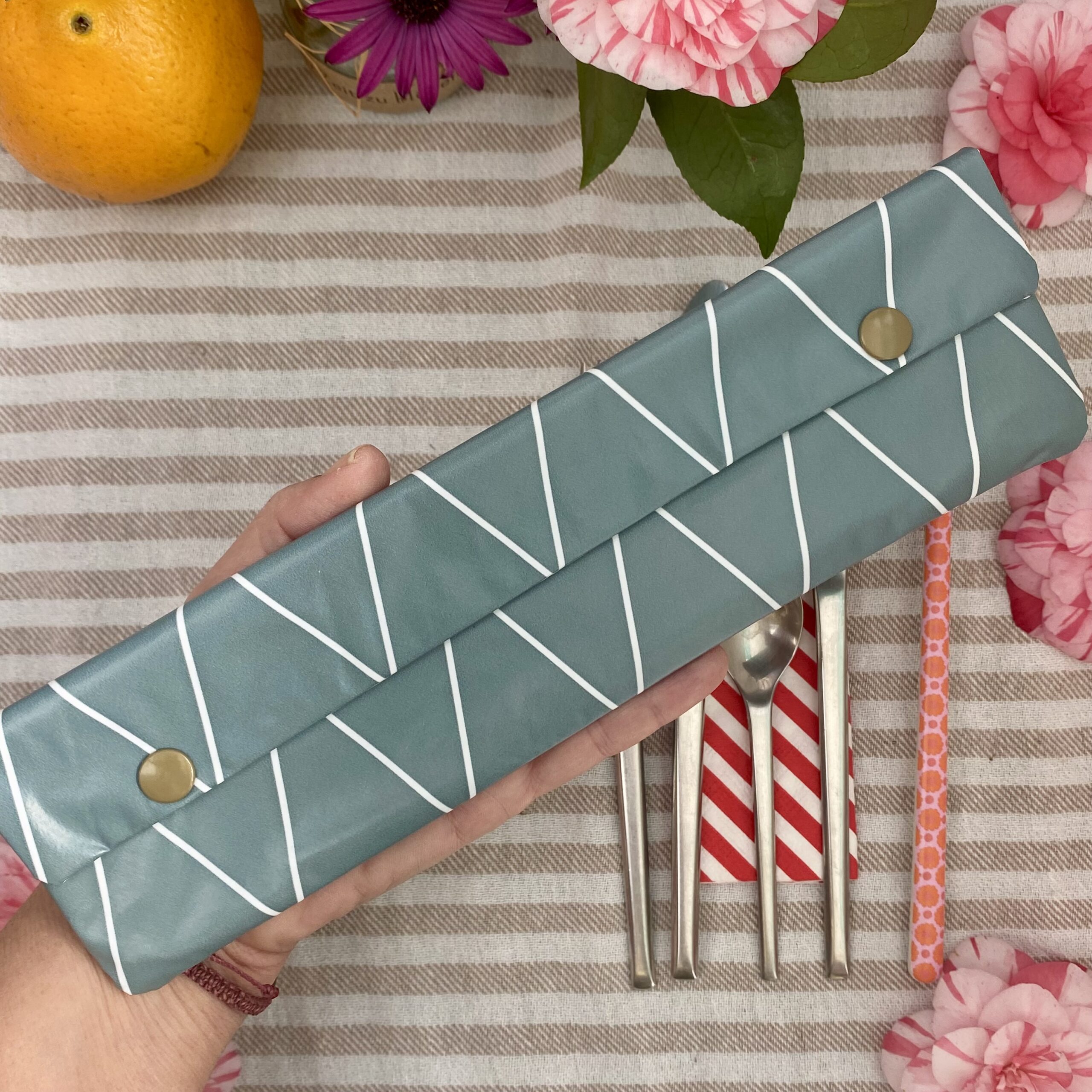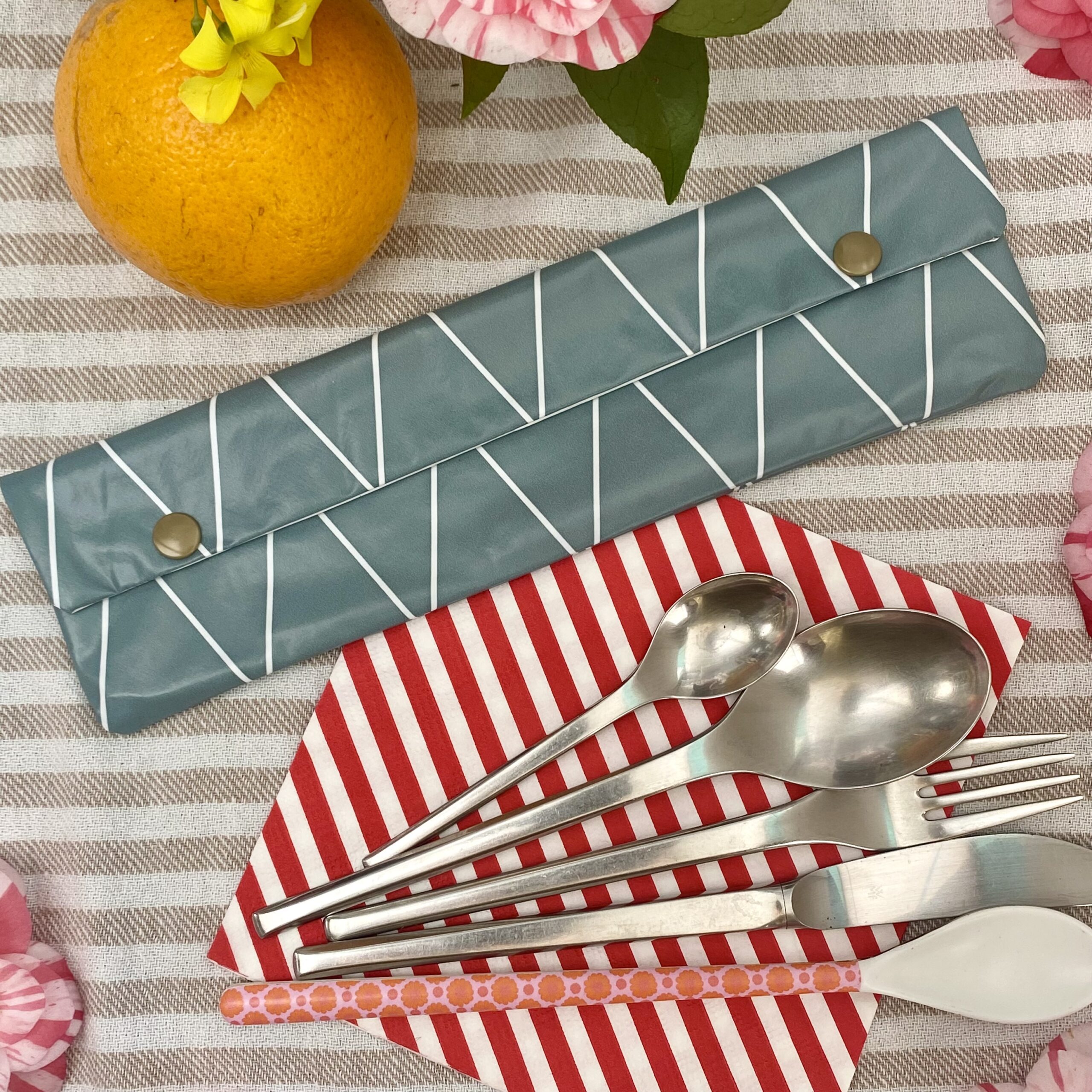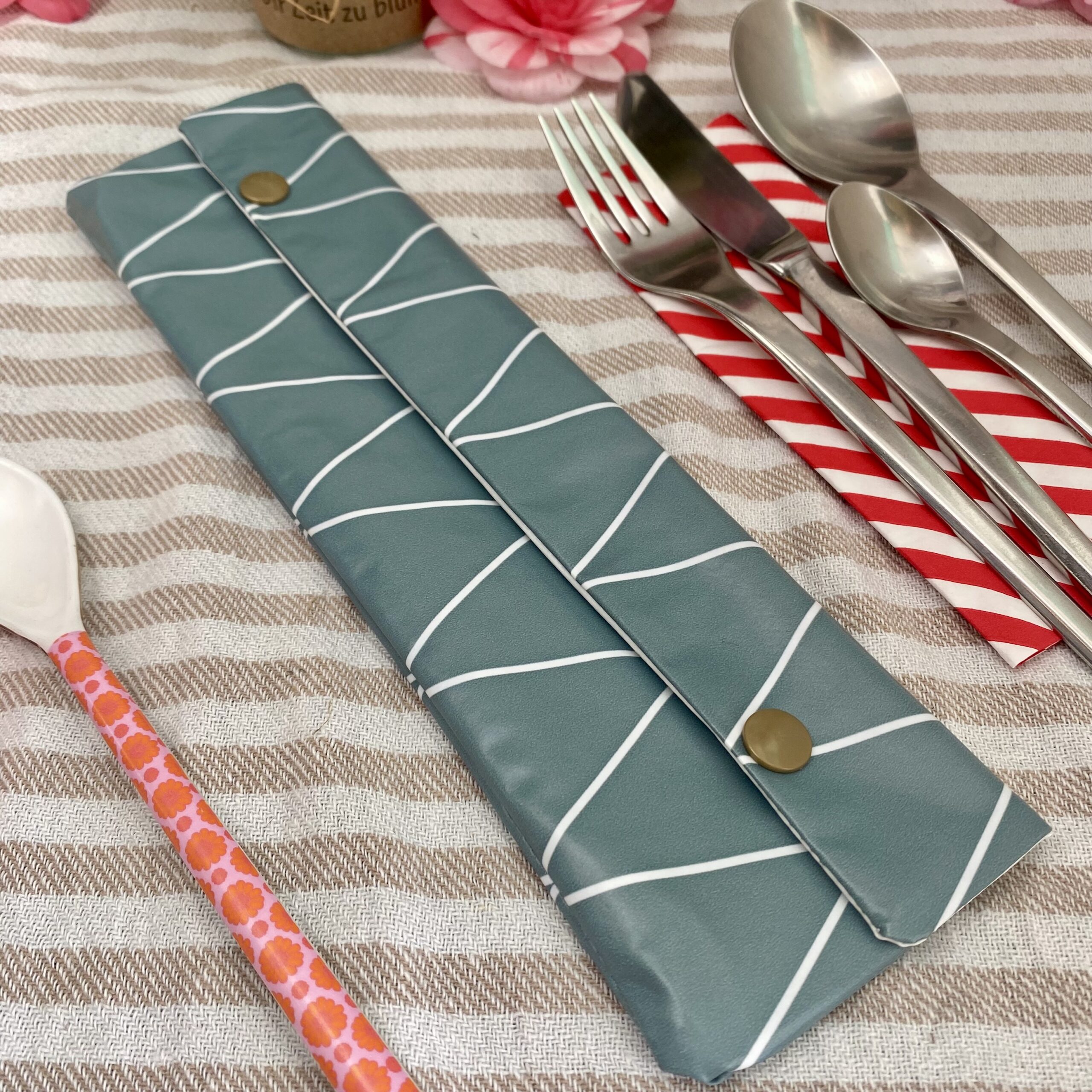Dein Besteck muss mit dieser Bestecktasche im Gepäck also niemals mehr lose irgendwo herumliegen, wenn Du unterwegs bist.