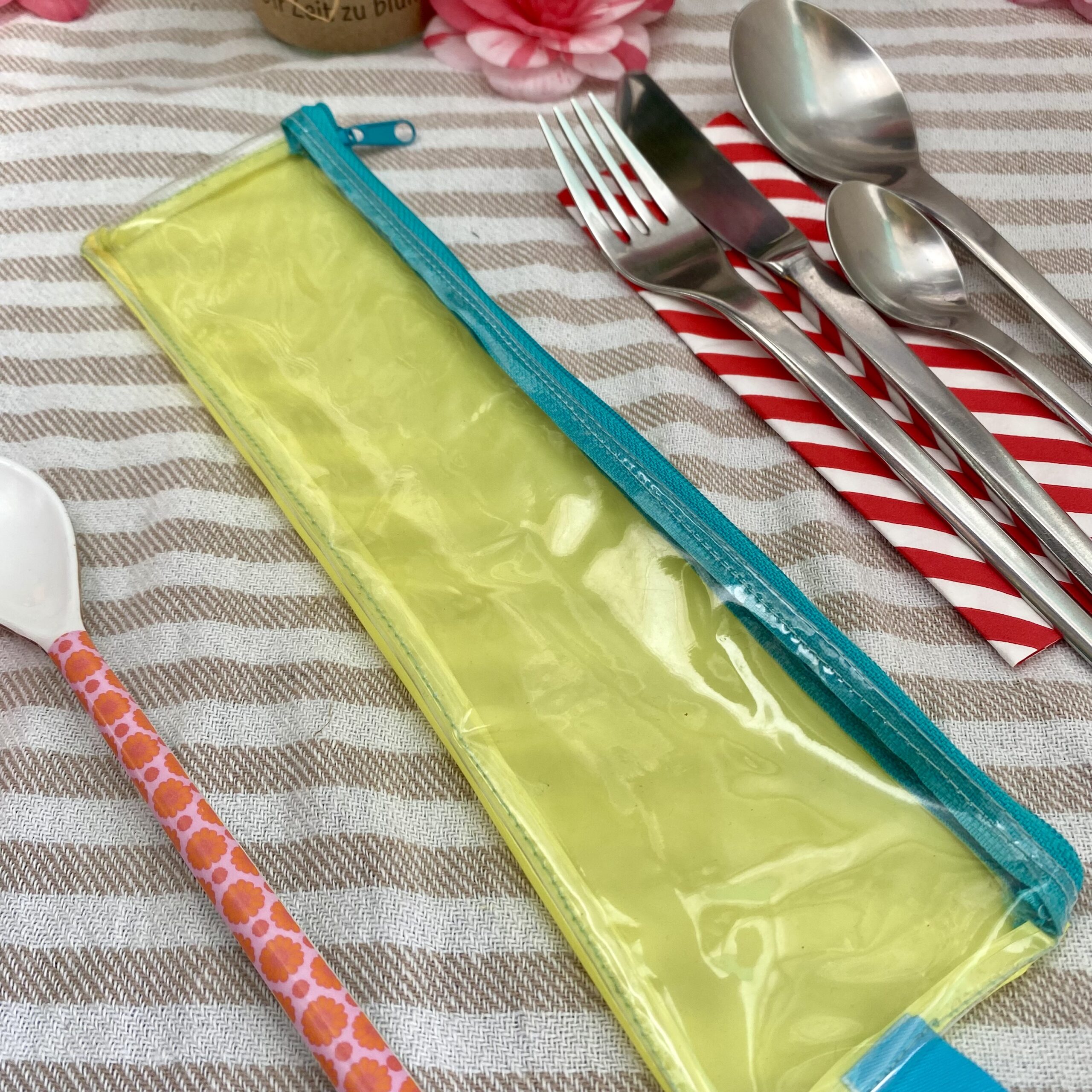Bestecktaschen sind die beste nachhaltige Alternative, um Dein Besteck unterwegs zu transportieren.