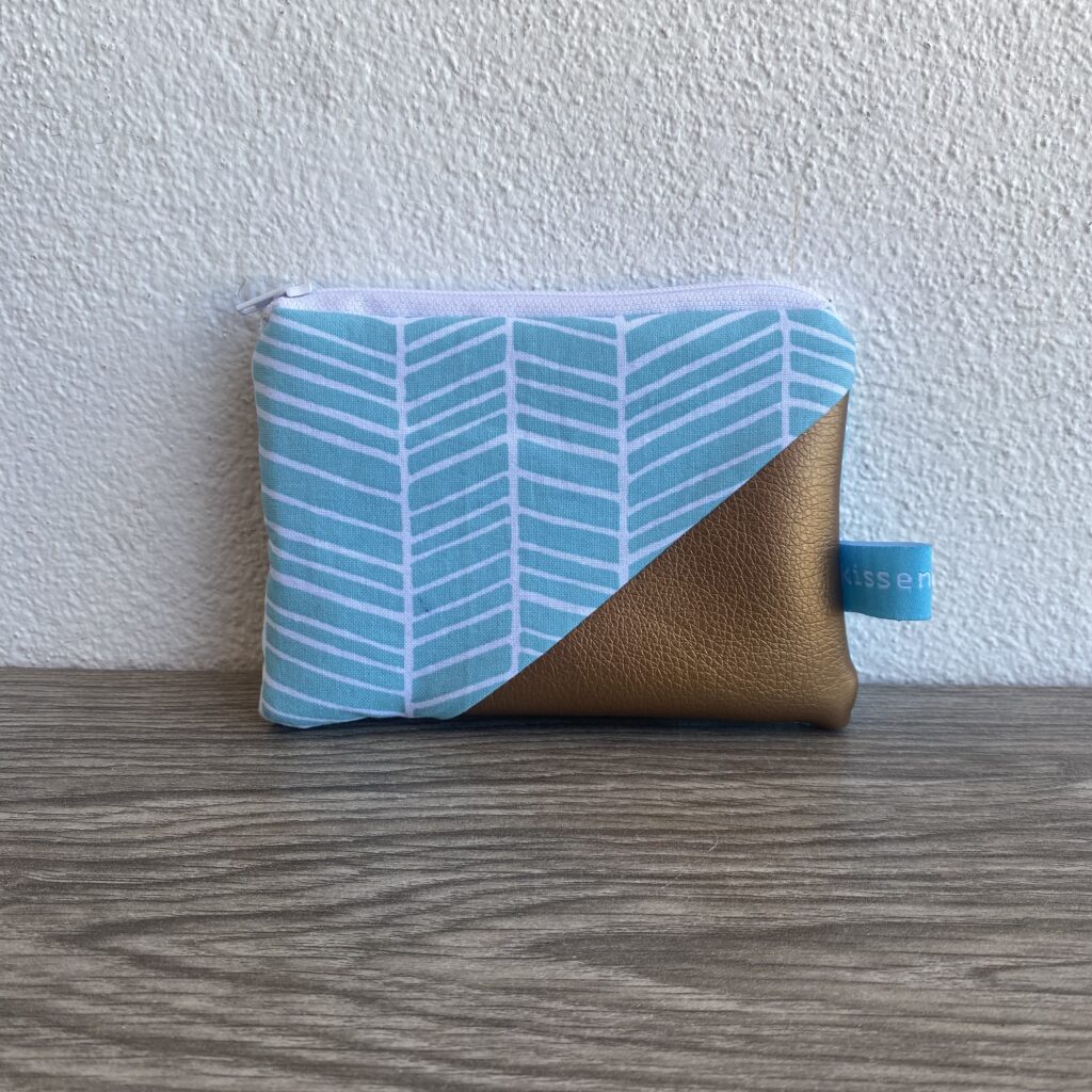 Diese schöne Mini-Geldbörse in meersfarbenem Türkis mit geometrischem Muster ist super praktisch für unterwegs, wenn Du nicht viel mitnehmen willst.