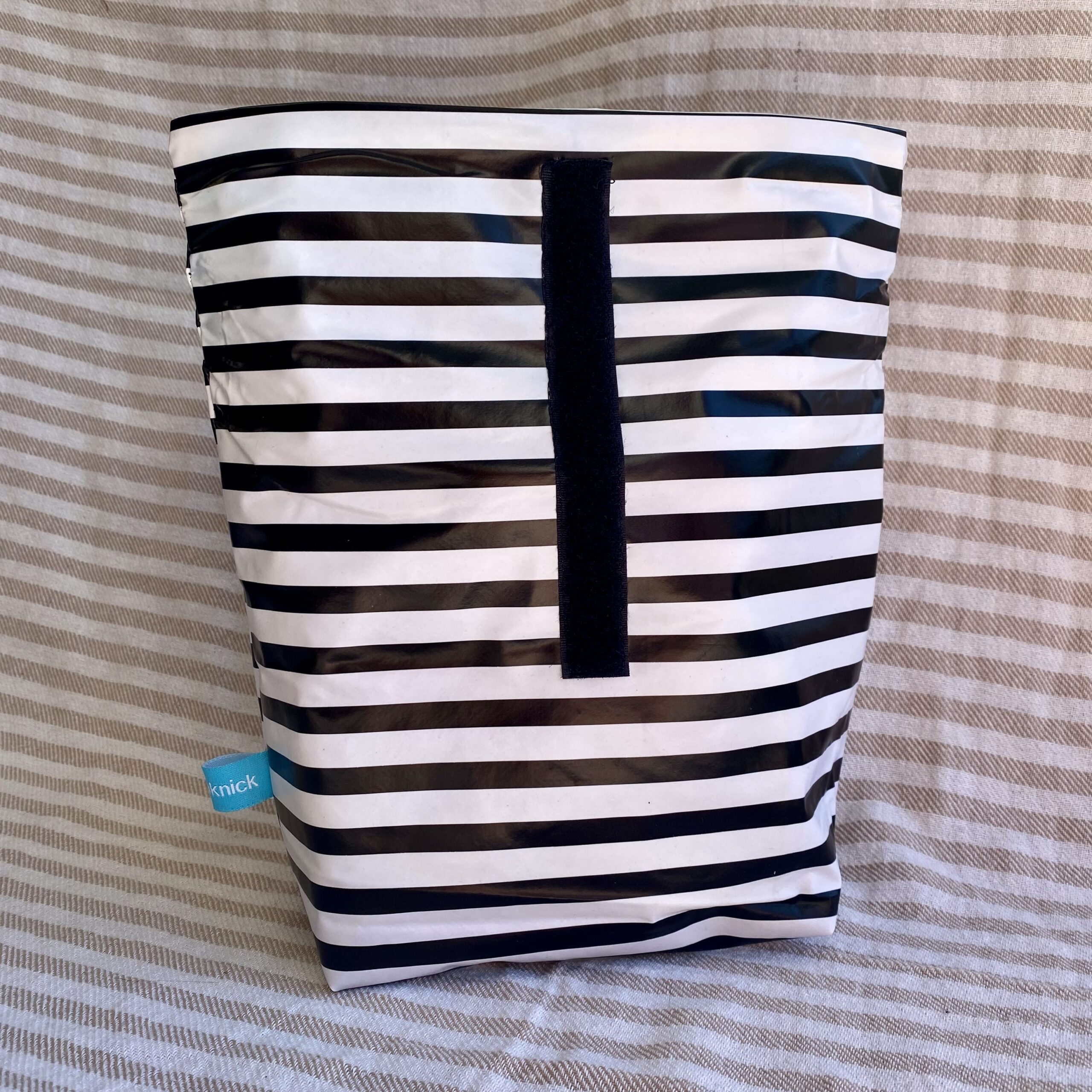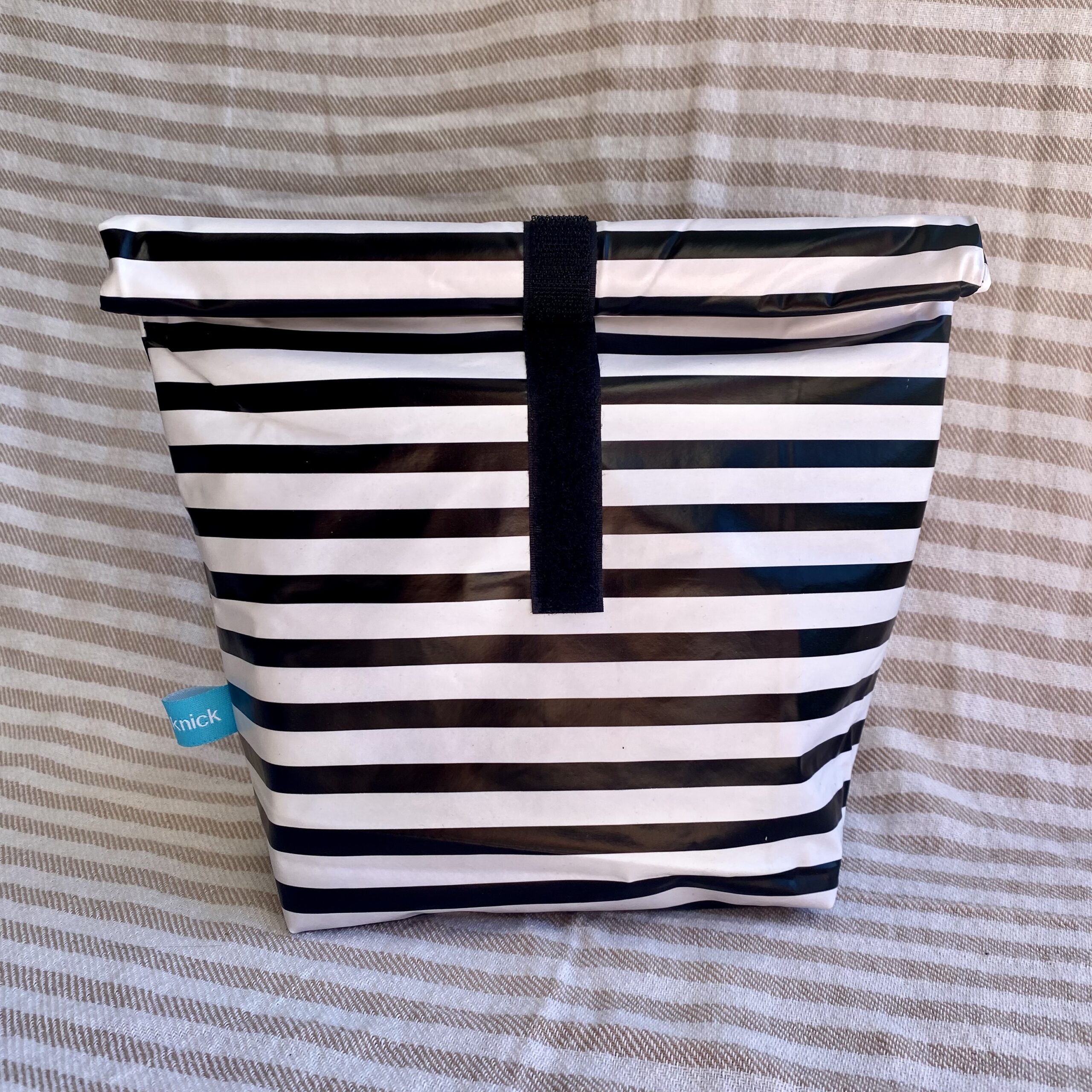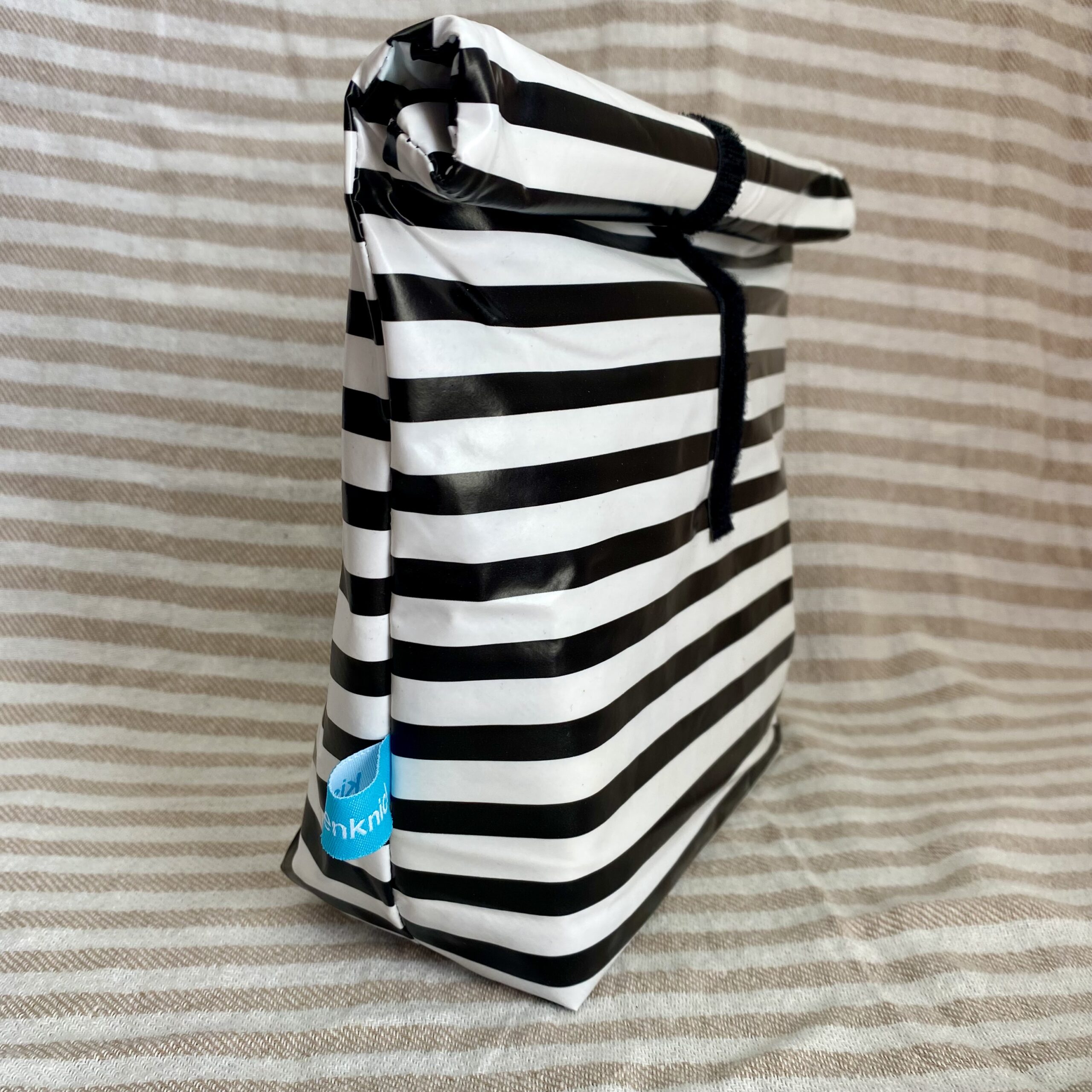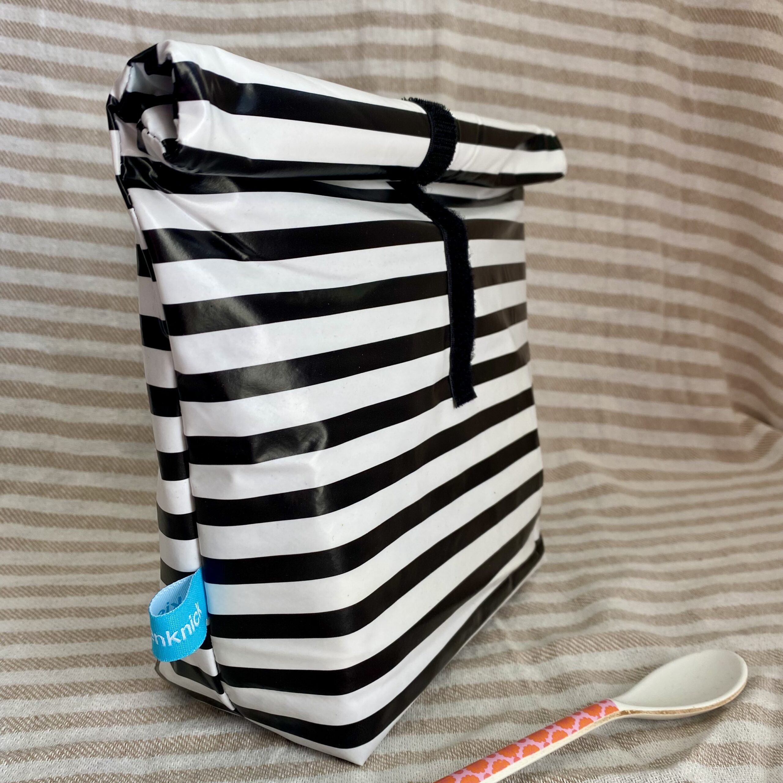 Dieses Lunchbag in Größe M mit schwarz-weiß Streifen ist eine nachhaltige Alternative zum Transport Deiner Lebensmittel oder auch anderer Dinge wie Kosmetik oder nasse Badekleidung