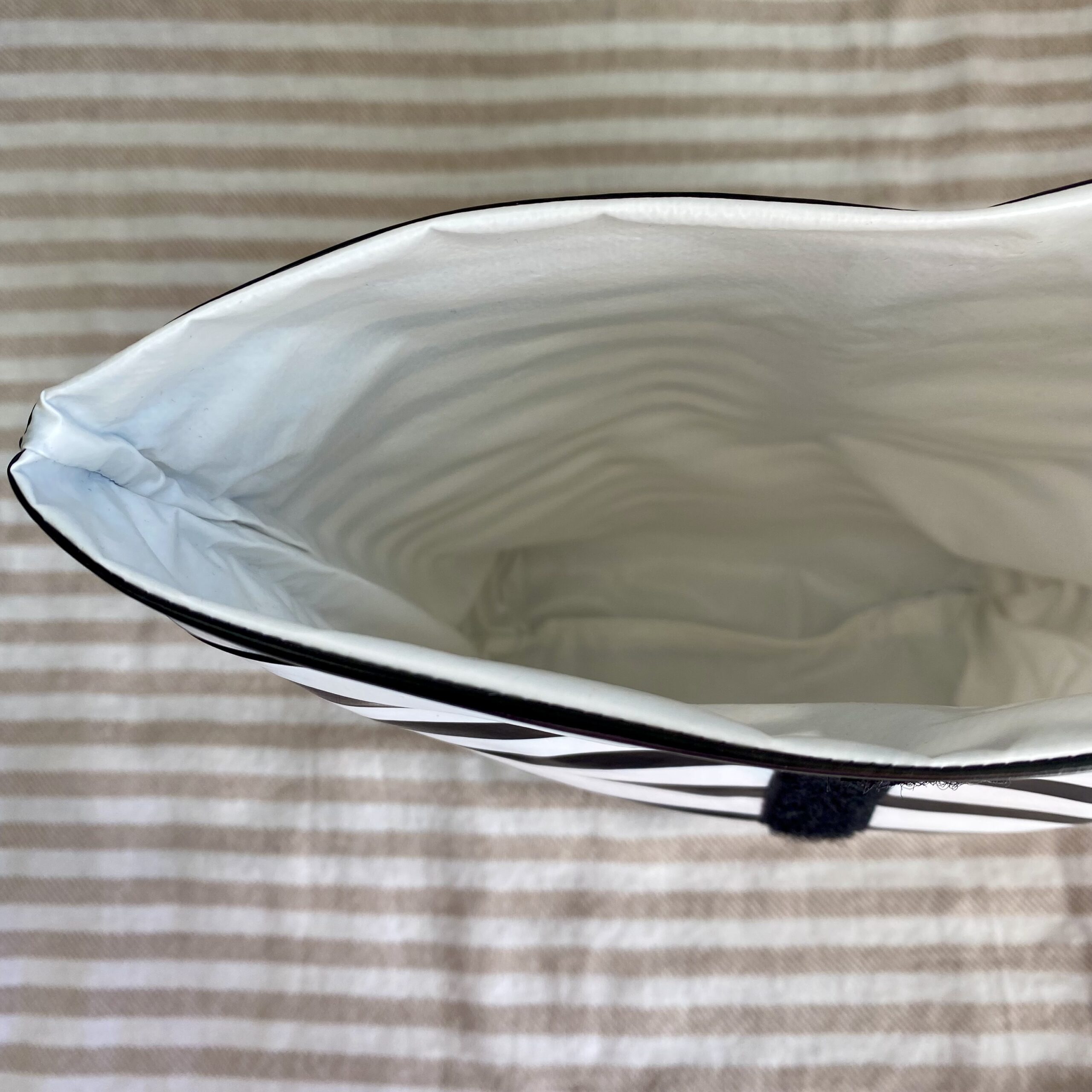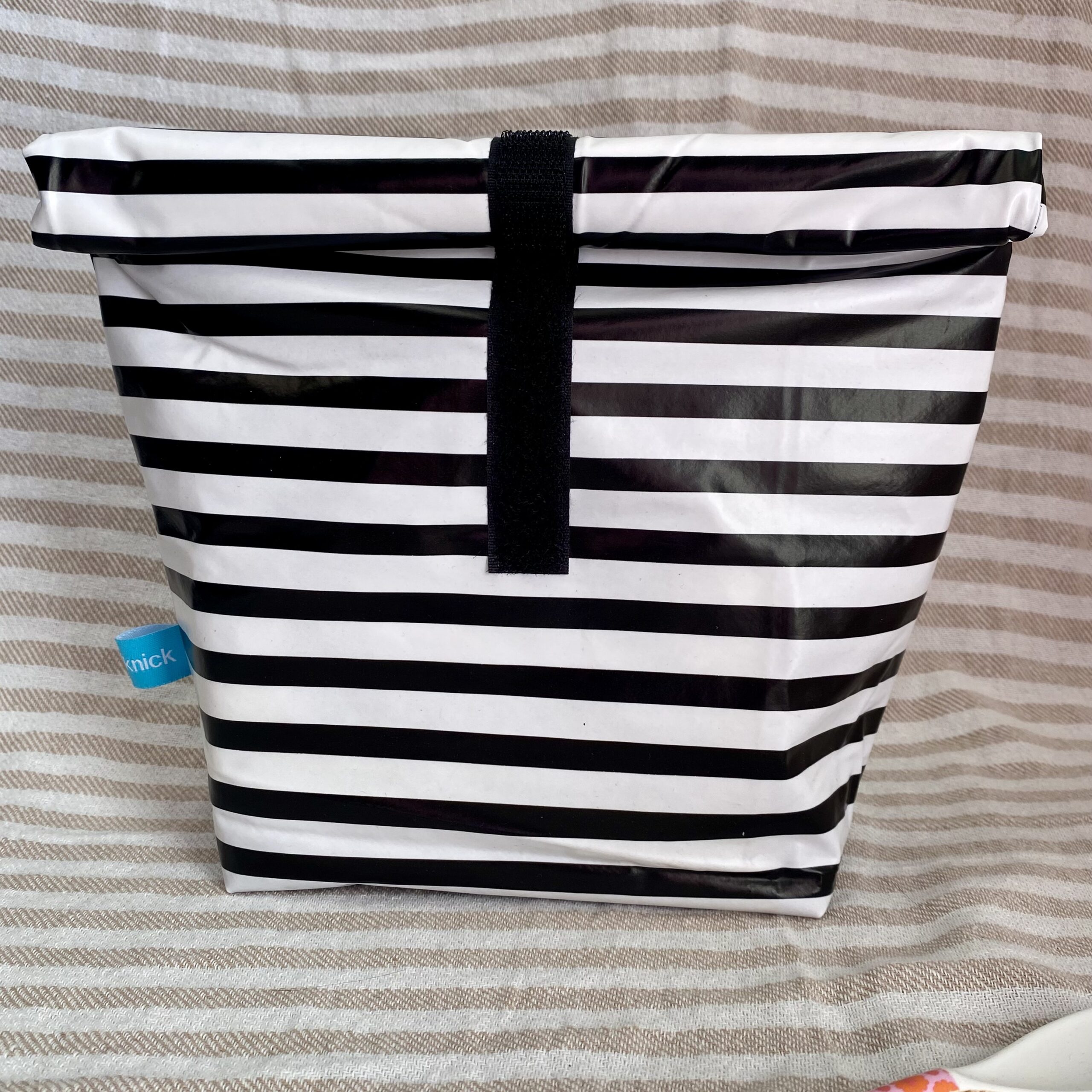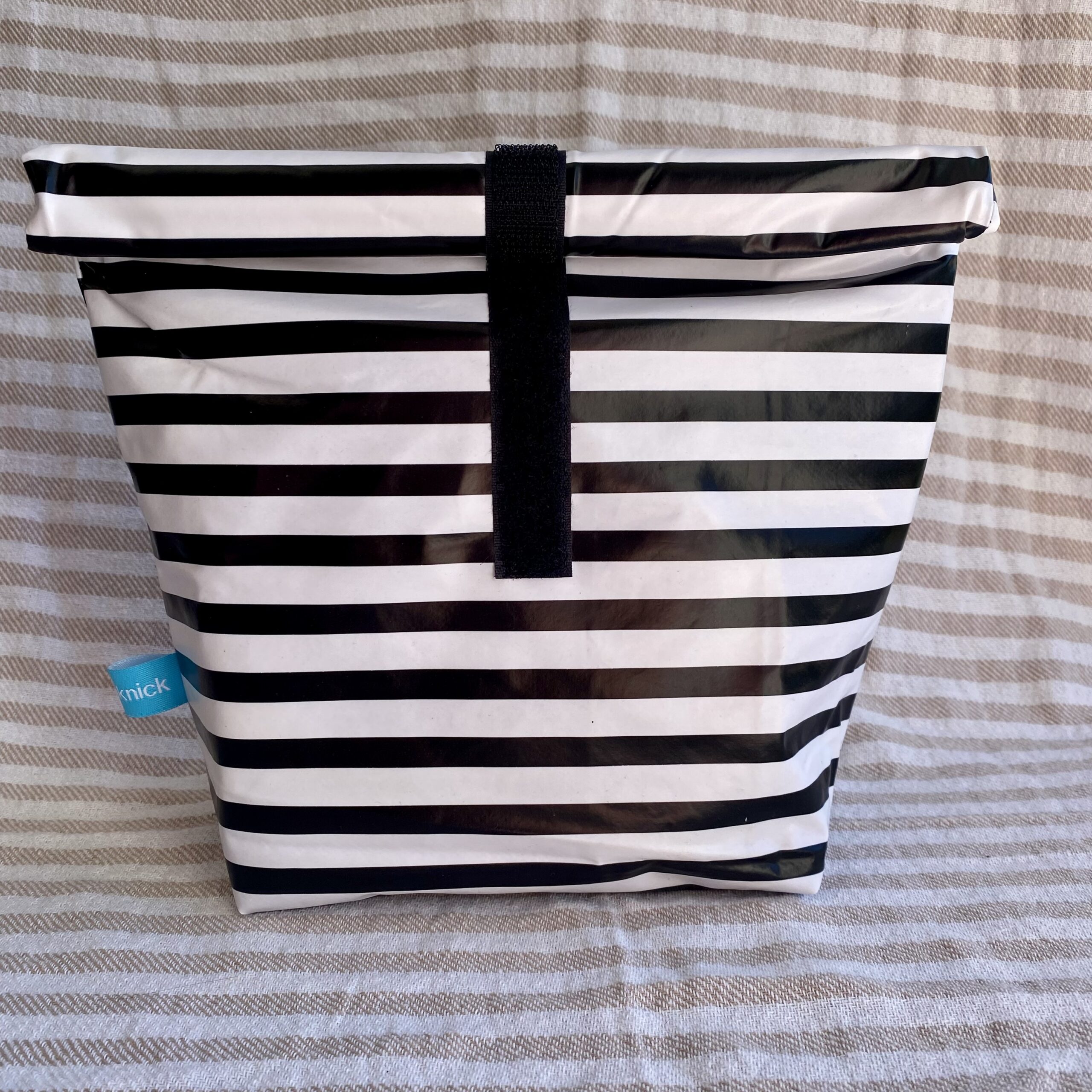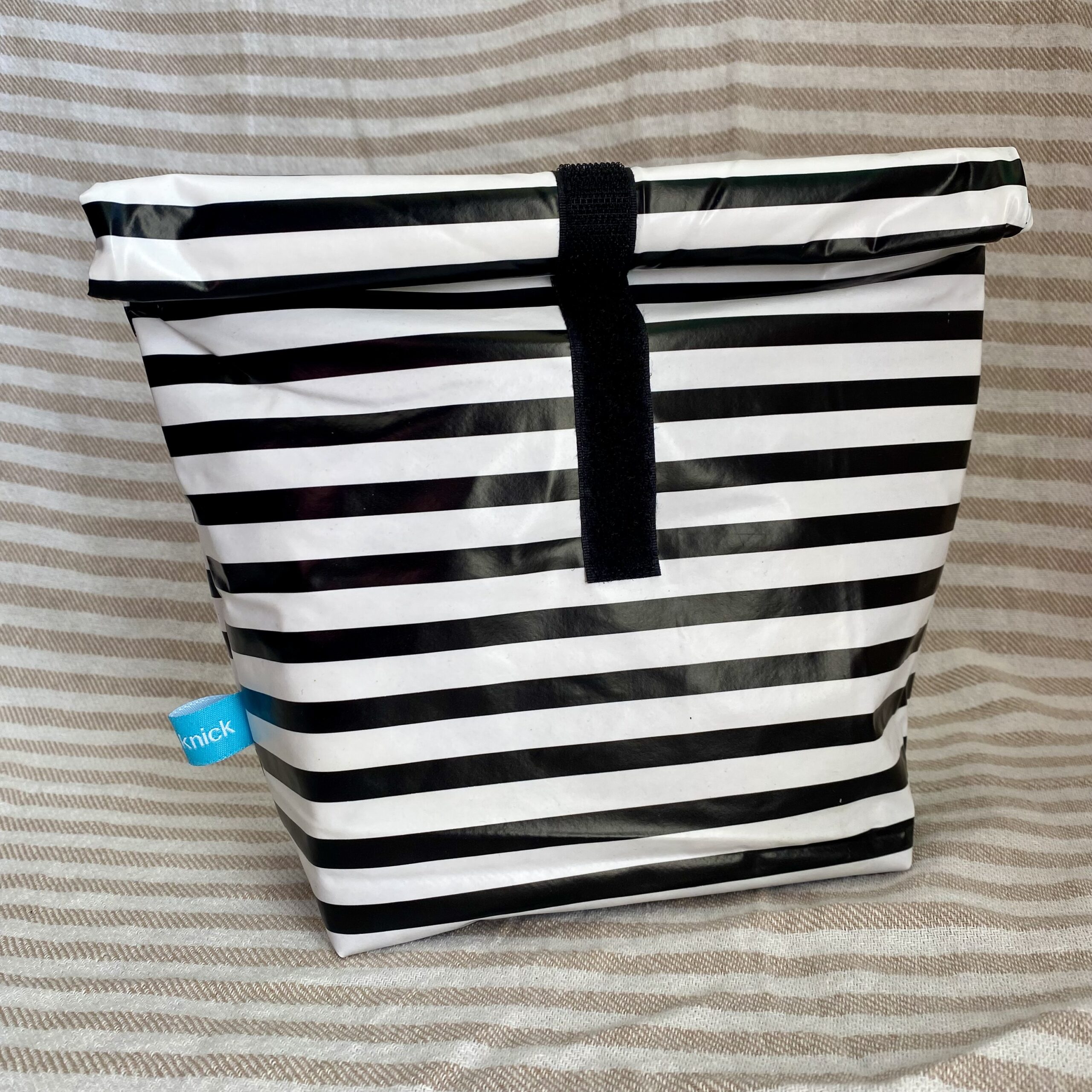 Dieses Lunchbag in Größe M mit schwarz-weiß Streifen ist eine nachhaltige Alternative zum Transport Deiner Lebensmittel oder auch anderer Dinge wie Kosmetik oder nasse Badekleidung