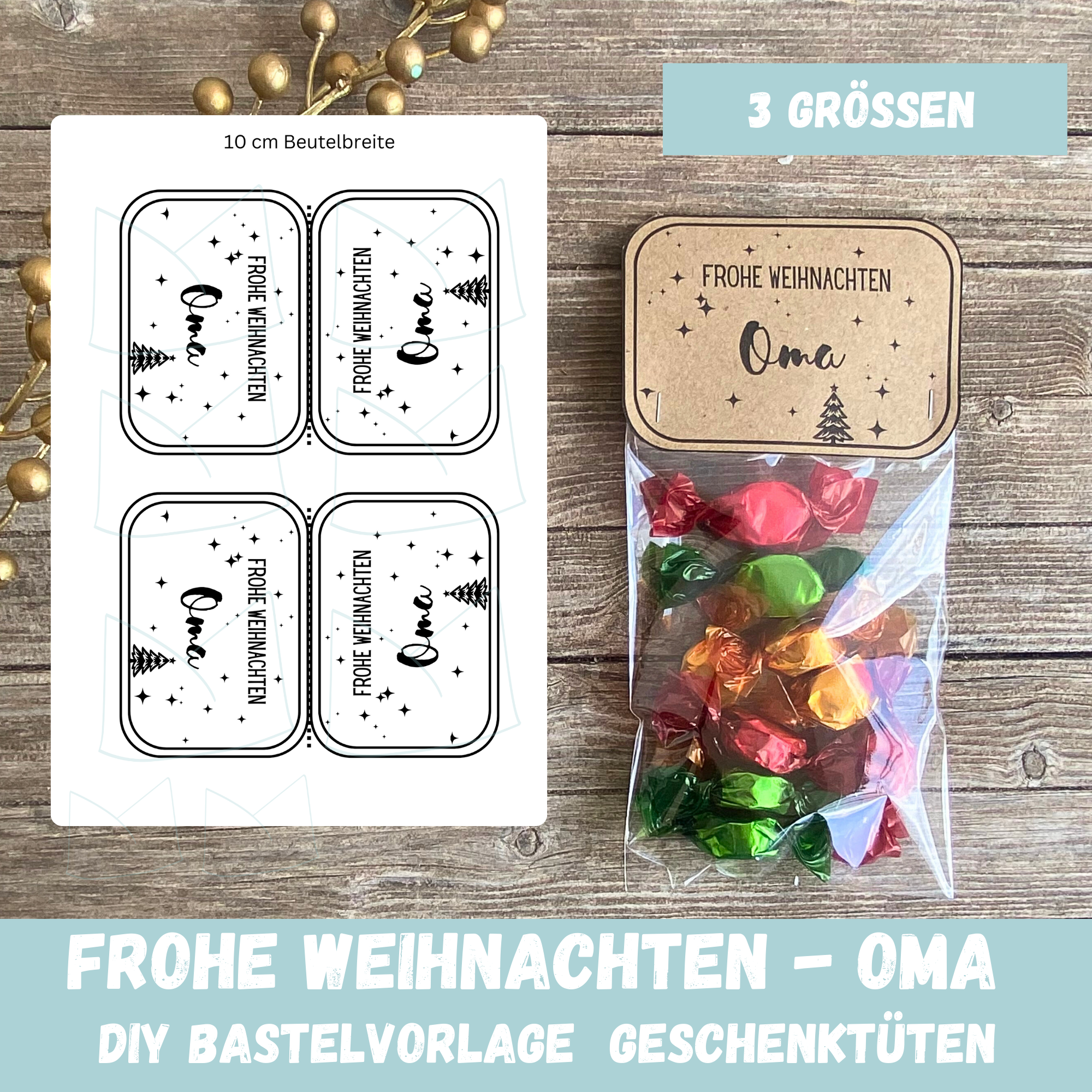 Verschenke an Deine Oma zu Weihnachten ein kleines personalisiertes Geschenk nur für sie. Mit unserer DIY Bastelvorlage für Geschenktüten kannst Du schnell und einfach Süssigkeiten, Schmuck, etwas Selbstgemachtes oder eine andere Kleinigkeit hübsch verpacken.