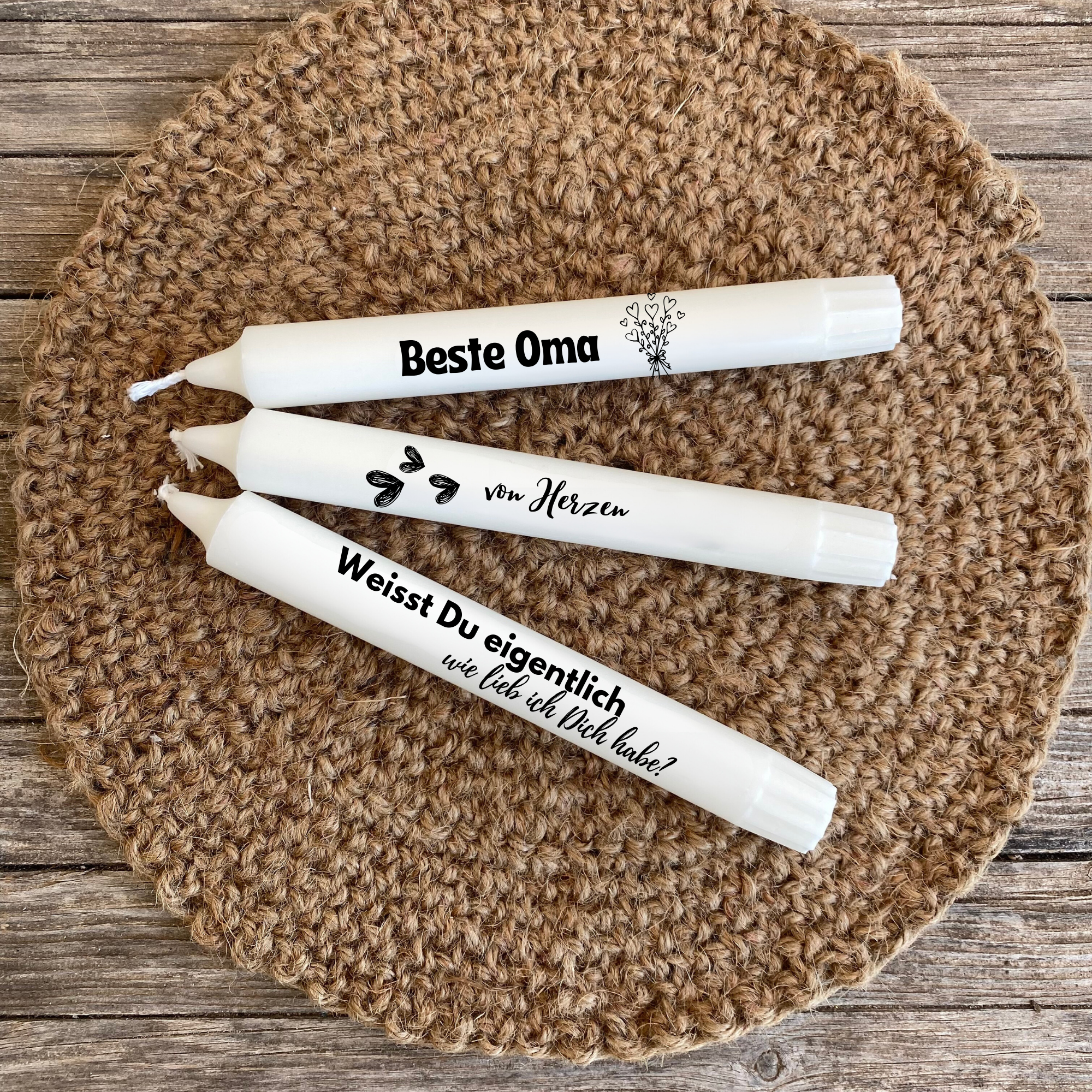 Schenke Deiner Oma eine schöne, von Dir selbstgemachte Kerze und zeige ihr wie lieb Du sie hast. Tolle Motive für Deine Omi, die sich über Deine selbstegmachten Kerzen bestimm freuen wird.